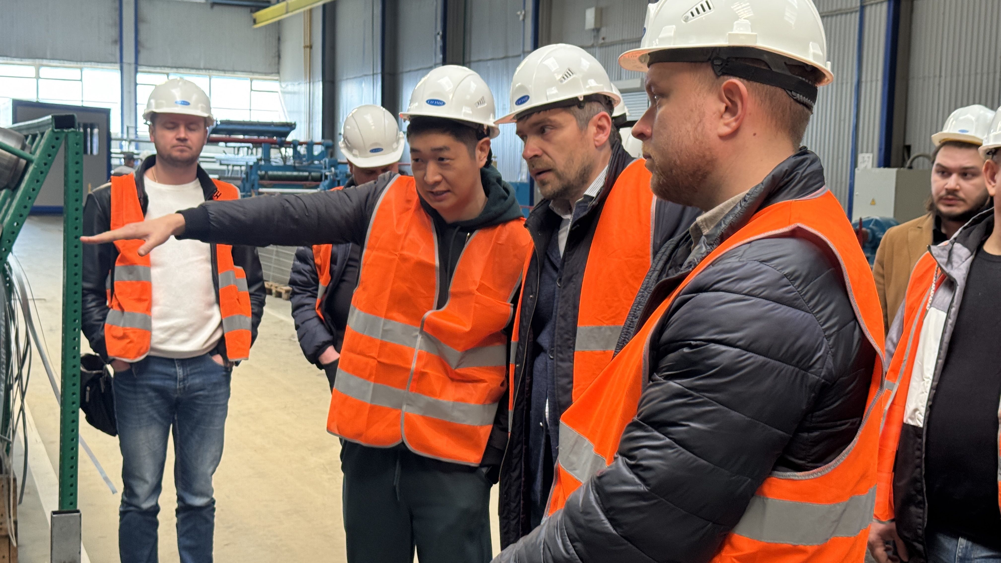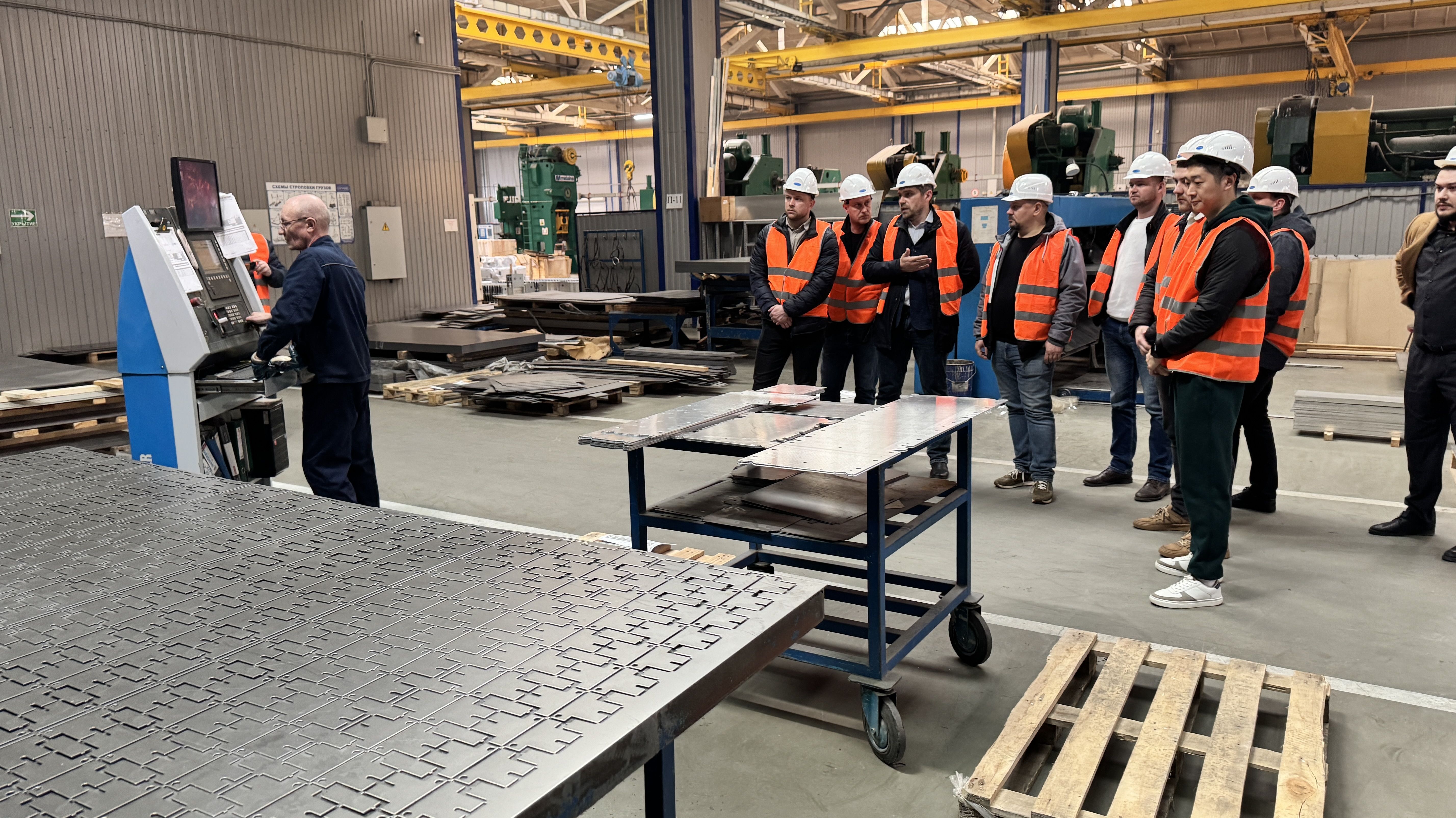 Обзорная экскурсия началась с демонстрации металлообрабатывающего комплекса в арсенале СОЭМИ: линии продольно-поперечной резки рулонного металла, лазерные установки, координатно-пробивные станки, профилегибочный участок и ещё более 300 единиц современного оборудования. Гости отметили, что такой масштаб более чем впечатляет.