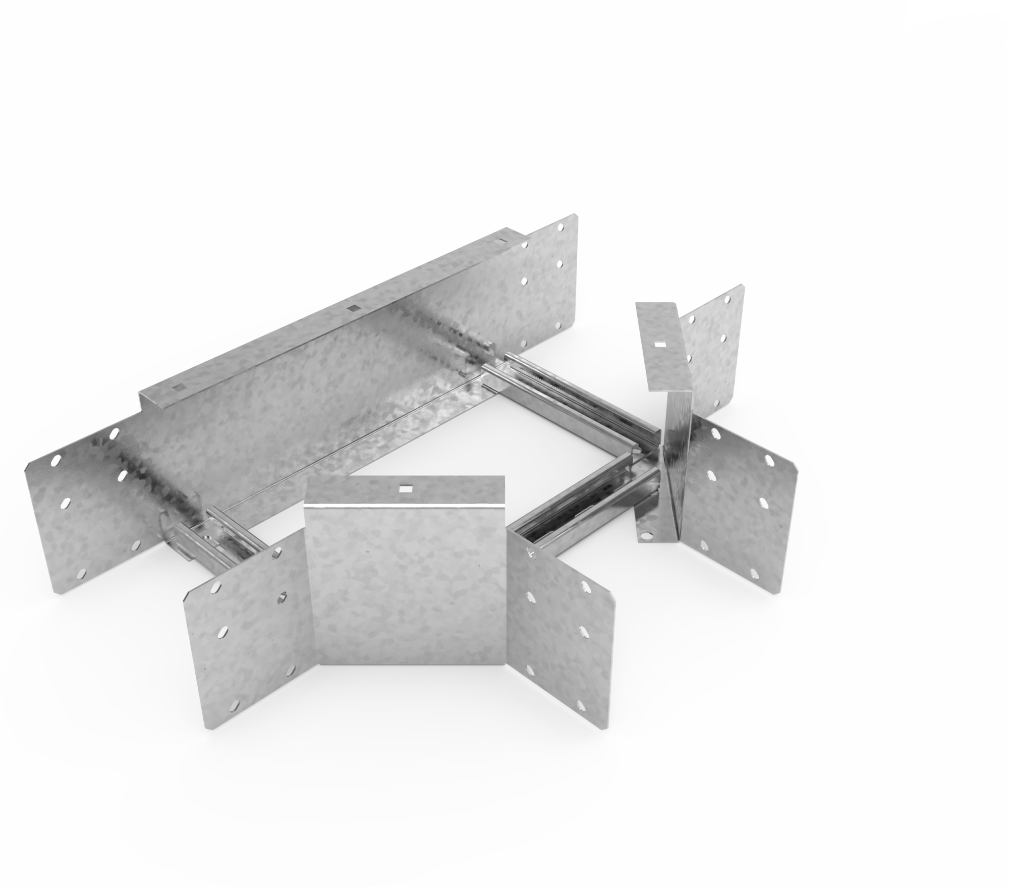 Кабельрост угловой  с R=100 мм тройниковый горизонтальный РУ1ТГ.800.200.100.2.2