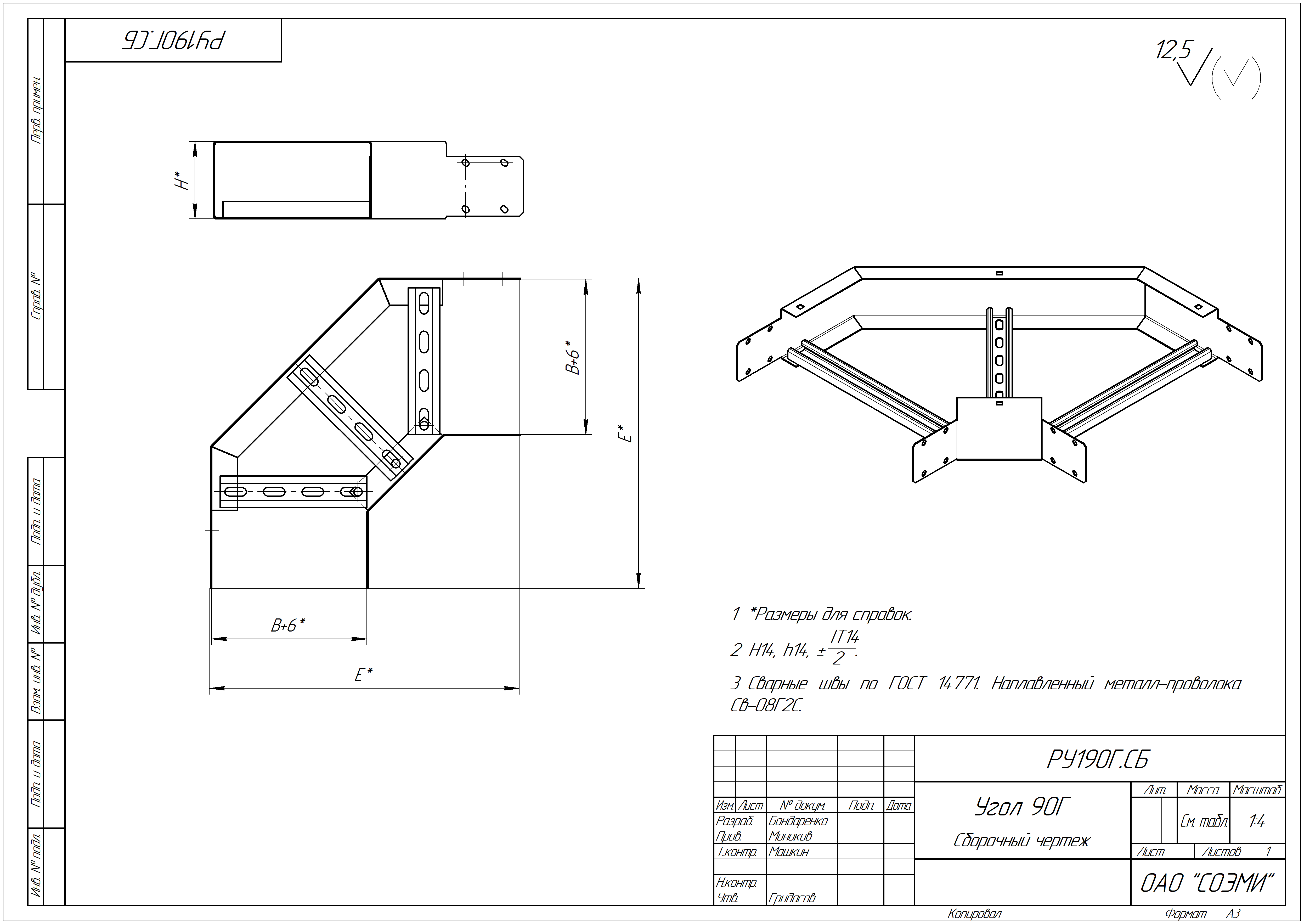 Кабельрост угловой предназначен для организации поворота кабельной трассы как в горизонтальной, так и в вертикальной плоскости на угол поворота в 45°, 90°. Кабельросты —это лотки лестничного типа с высокой несущей способностью, как правило, промышленного назначения. С помощью лотков кабельростов возможна прокладка кабельной трассы с увеличенным расстоянием между опорами до 6 метров. Применяются для прокладки проводов в кабельных эстакадах, в тоннелях, а также, внутри помещений. Данное изделие изготовлено из стали оцинкованной по методу Сендзимира. Имеет следующие габаритные характеристики: толщина металла - 1,5мм, длина –701мм, высота –200 мм. Соответствует климатическому исполнению: УТ2,5. Высокий стандарт качества изделий, гибкое производство, обеспечение поставки любого объема точно в срок! Кабельрост угловой  с R=100 мм 90 горизонтальный РУ190Г.500.200.100.1,5.2 изготовлено согласно ТУ 25.11.23-029-05774835-2022. Производственная компания “СОЭМИ” предлагает купить недорого данный вид продукции, выбирая из большого ассортимента. Вы можете собрать Ваш заказ прямо на сайте, или же оставить заявку по телефону, в форме обратной связи на сайте. Ваша выгода - неоспорима, ведь обращаясь напрямую к заводу производителю – вы получаете гарантированно лучшие цены, надежность поставки, и доставку собственным транспортом в любой регион России и стран СНГ. Звоните прямо сейчас и обсудите условия оплаты и доставки с Вашим персональным менеджером!