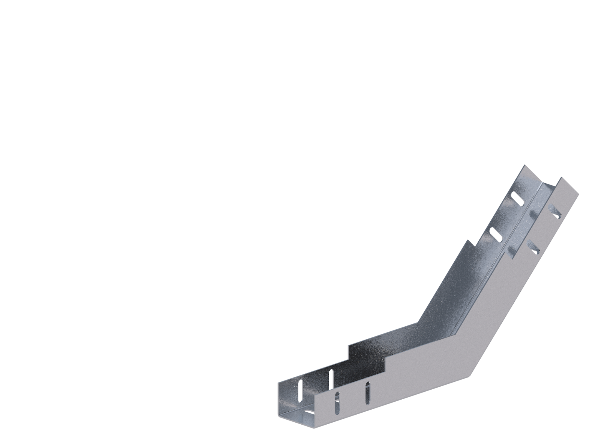 Лоток угловой предназначен для организации поворота кабельной трассы как в горизонтальной, так и в вертикальной плоскости на угол поворота в 45°, 90° или 135°.