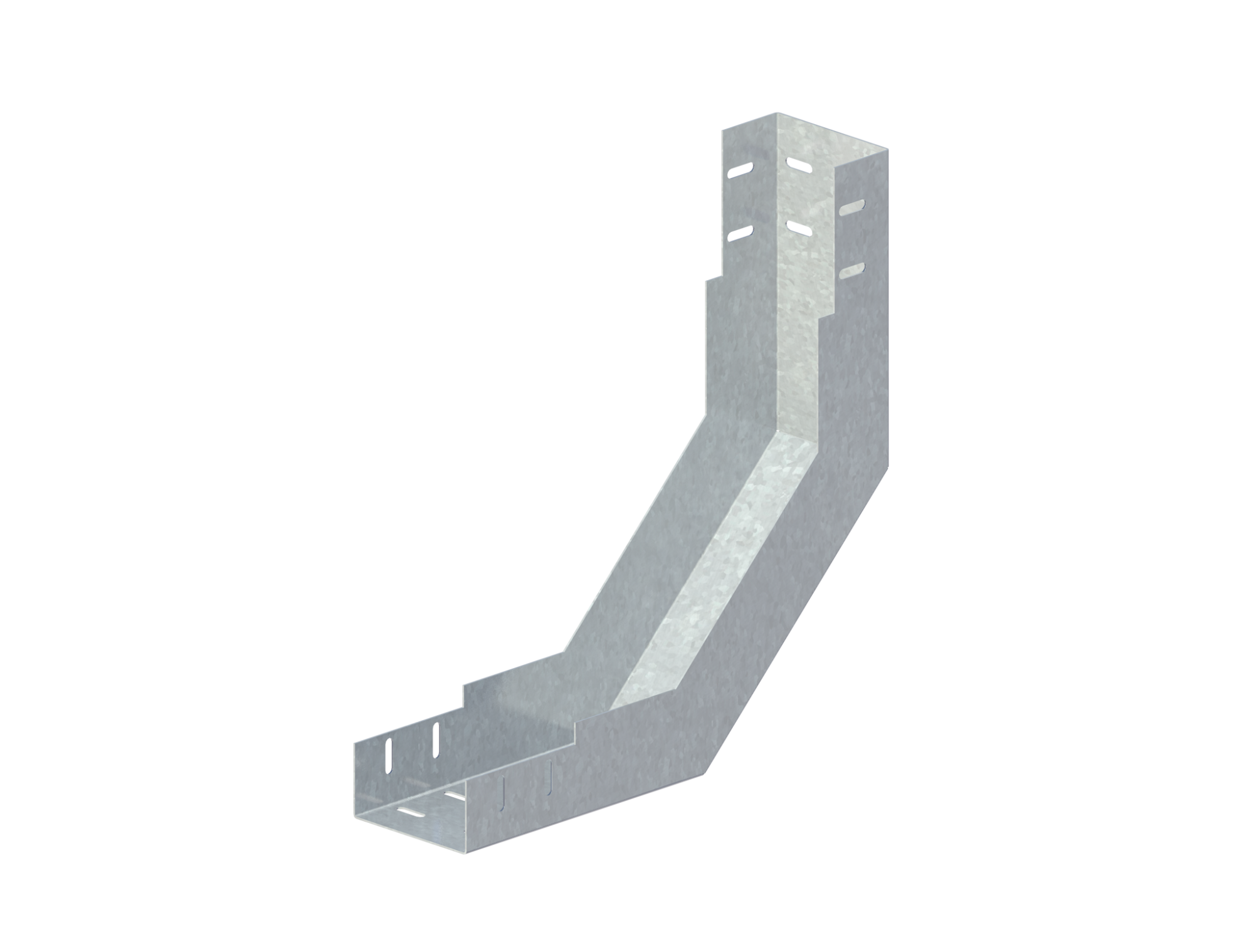 Лоток угловой предназначен для организации поворота кабельной трассы как в горизонтальной, так и в вертикальной плоскости на угол поворота в 45°, 90° или 135°.